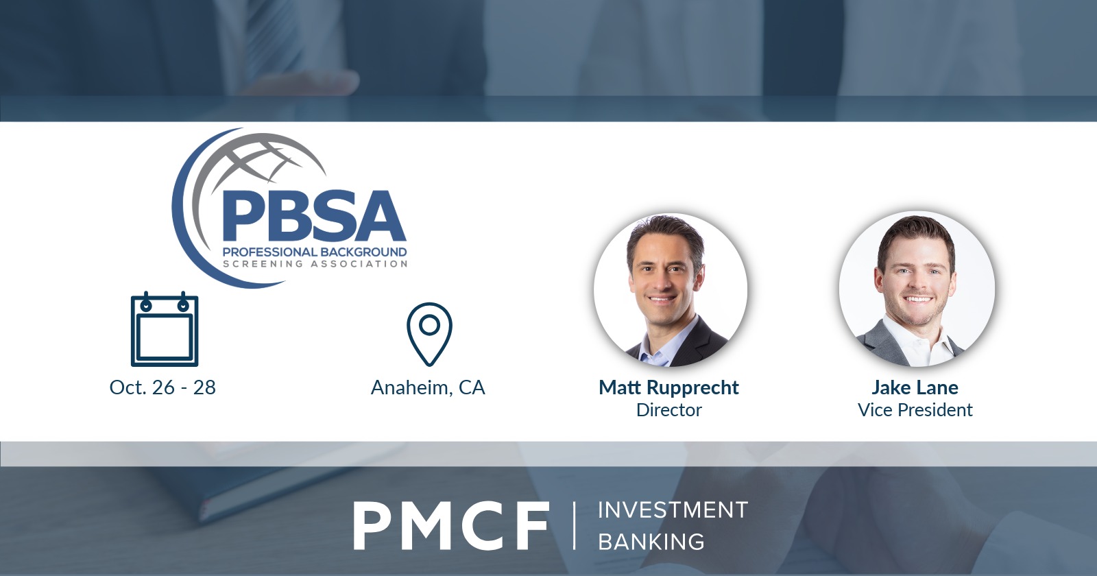 As part of the event, PMCF Investment Banking Director Matt Rupprecht and Vice President Jake Lane will present “M&A Considerations in the Background Screening Industry.” Alongside Bruce Berg, President of Berg Consulting Group, the session will highlight key considerations for background screening providers in today’s dynamic M&A market. Topics include steps to maximize valuation prior to undergoing a sell-side process, how to properly prepare for a transaction, macroeconomic factors affecting dealmaking now and in the future, and the value add of expert advisory services.