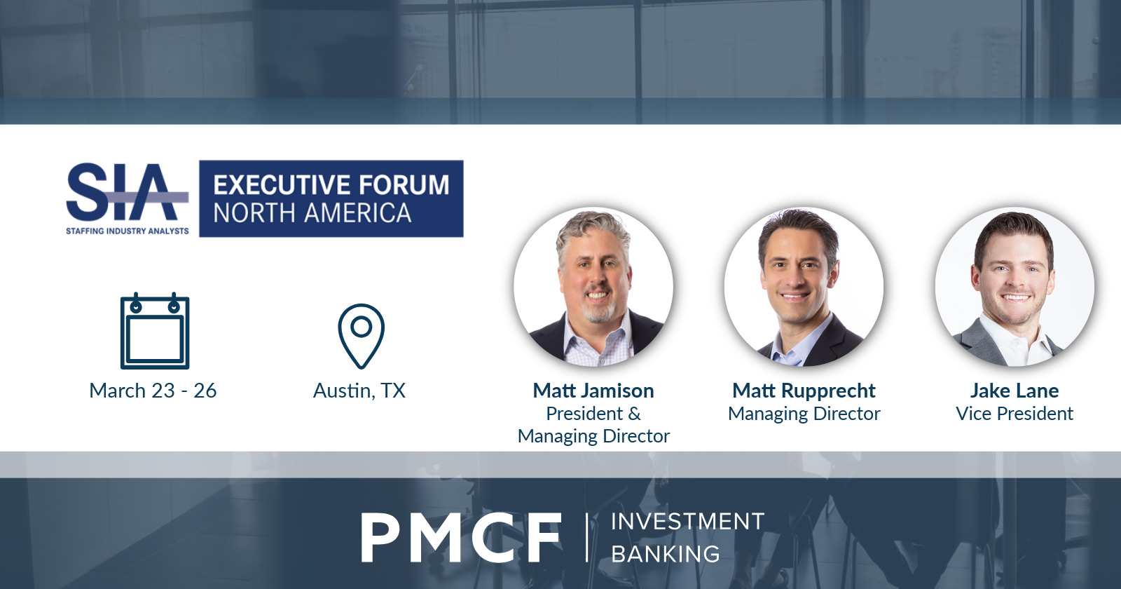 PMCF President and Managing Director Matt Jamison, Managing Director Matt Rupprecht, and Vice President Jake Lane will be in attendance to discuss cutting-edge insights, bold strategies, and peer-to-peer connections in the Human Capital Management and Staffing industries.